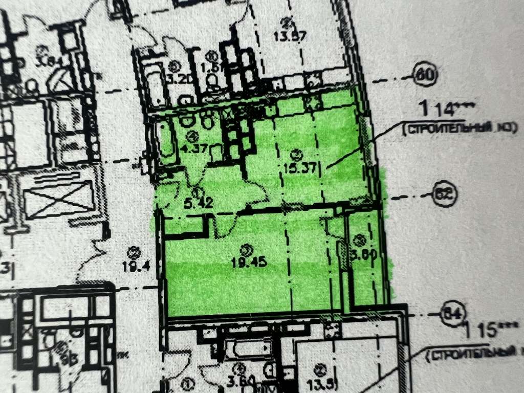Жилая площадь 19.46 кв. м, кухня 15.37 кв. м, ремонта нет. Раздельных санузлов - 1, совмещенных санузлов - 1, балконов - нет, лоджий - 1, окна выходят во двор и на улицу.