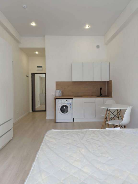 Здесь установлены новые надежные коммуникации и железобетонные перекрытия. В студии выполнена евроотделка, что избавит вас от лишних за от с обустройством помещения. Тут уже есть качественная металлическая дверь c внешней вставкой и зеркальной панелью, натяжные потолки, радиаторы. Санузел отделан под ключ.