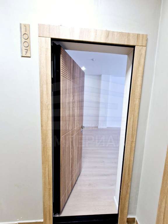 На стенах поклеены обои под покраску, на полу постелен ламинат с плинтусами и откосами. Есть вытяжная вентиляция в санузле и на кухне, выходы хв/гв, место под раковину на кухне. Кроме того, в помещениях уже есть выключатели освещения, розетки для бытовой техники и роутера, а также сделаны закладные для оптоволокна для интернета.