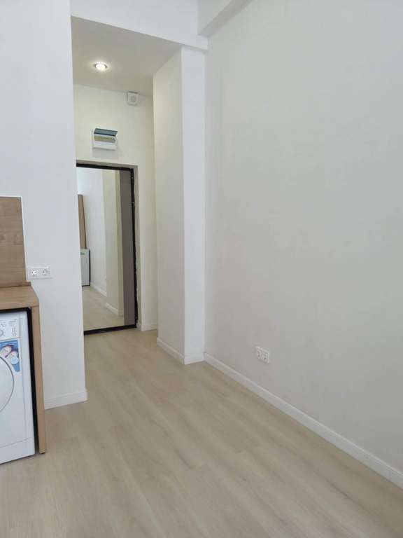 На стенах поклеены обои под покраску, на полу постелен ламинат с плинтусами и откосами. Есть вытяжная вентиляция в санузле и на кухне, выходы хв/гв, место под раковину на кухне. Кроме того, в помещениях уже есть выключатели освещения, розетки для бытовой техники и роутера, а также сделаны закладные для оптоволокна для интернета.