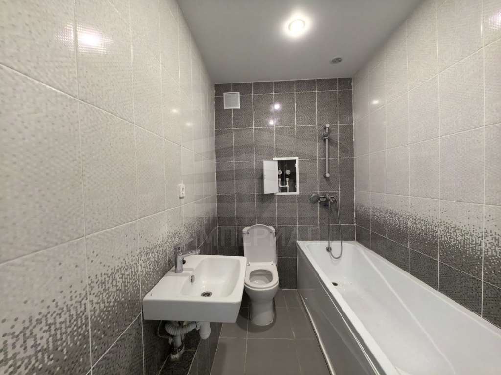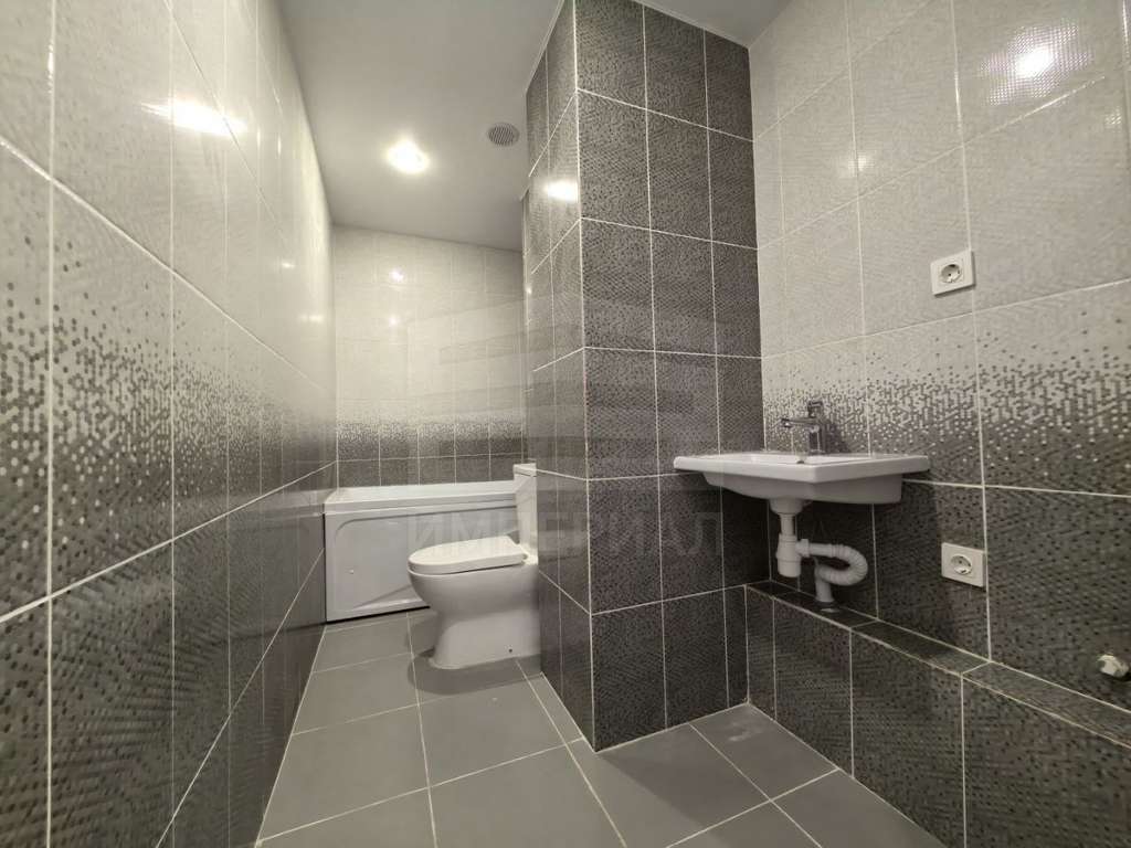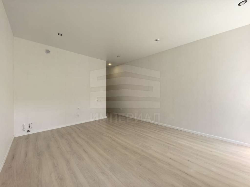 На стенах поклеены обои под покраску, на полу постелен ламинат с плинтусами и откосами. Есть вытяжная вентиляция в санузле и на кухне, выходы хв/гв, место под раковину на кухне. Кроме того, в помещениях уже есть выключатели освещения, розетки для бытовой техники и роутера, а также сделаны закладные для оптоволокна для интернета.