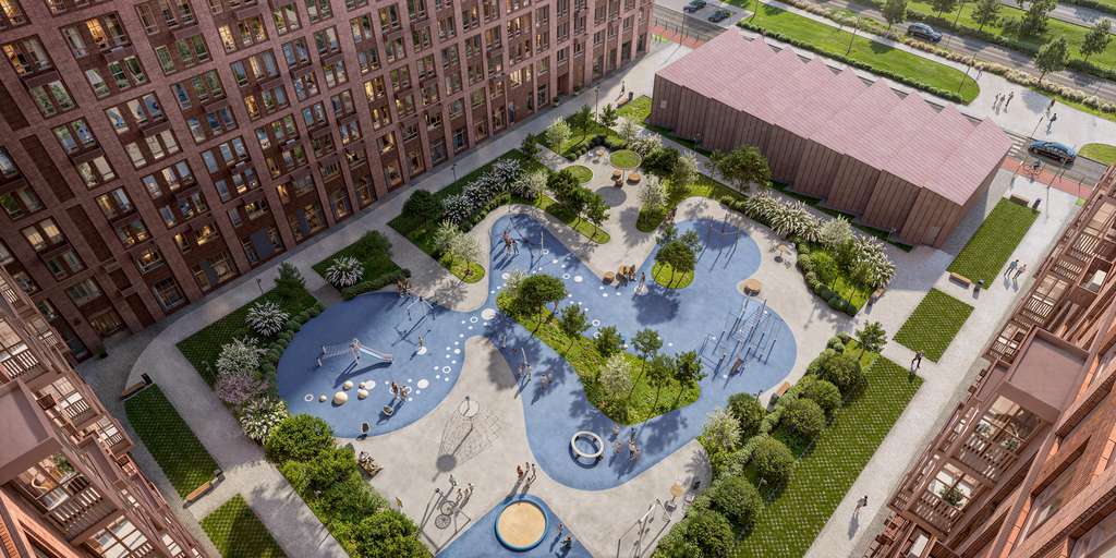 Во внутреннем приватном дворе-парке будут детские и спортивные площадки. А для занятий спортом будут обустроены воркаут-пространства.