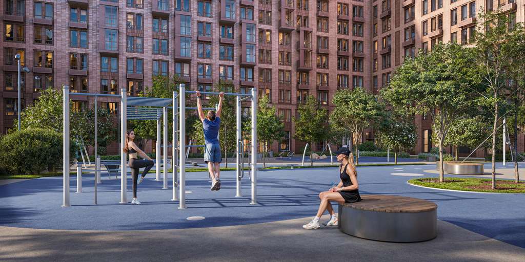 Во внутреннем приватном дворе-парке будут детские и спортивные площадки. А для занятий спортом будут обустроены воркаут-пространства.
