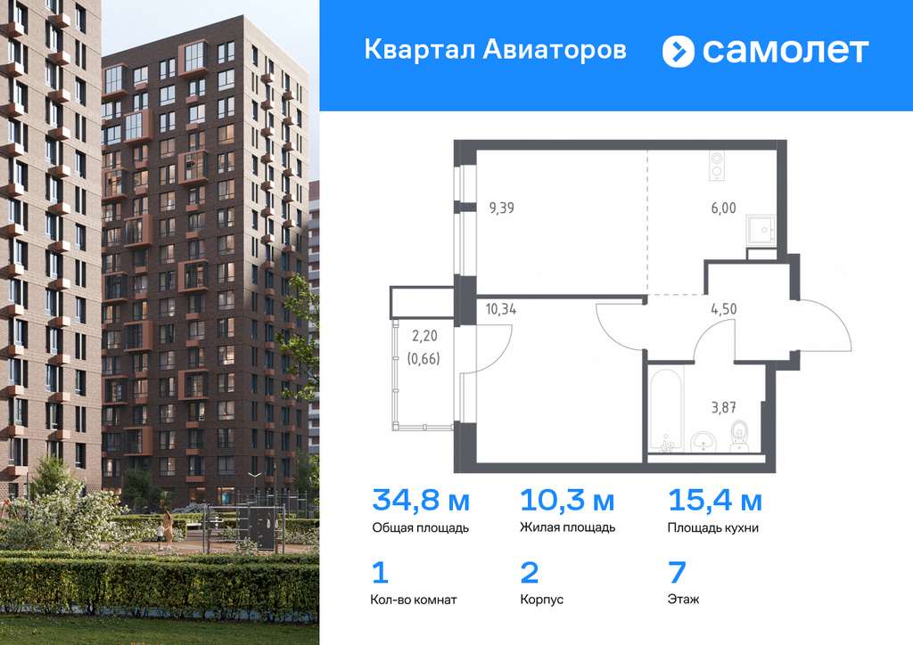 Строим кварталы для жизни с заботой о будущем. Предлагается 1-комнатная квартира комфорт-класса 34,76 кв. м в корпусе 2 на 7 этаже, в ЖК «Квартал Авиаторов»