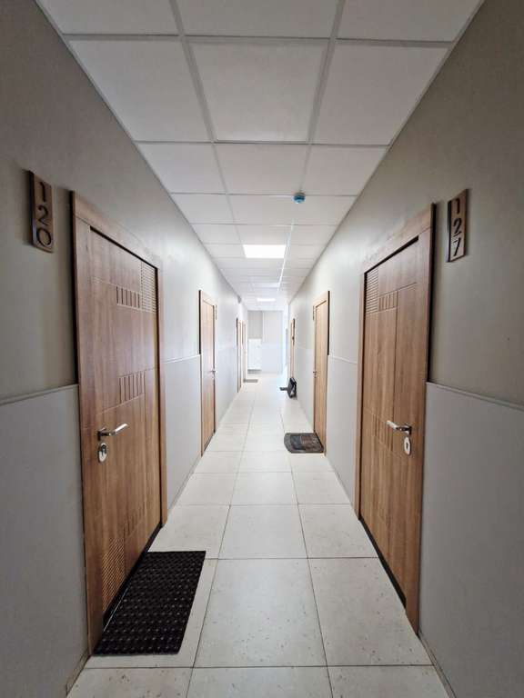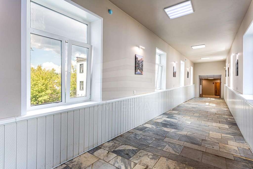 Внутри выполнена стильная отделка в светлых тонах с использованием современных материалов, установлены новые инженерные коммуникации и противопожарная сигнализация. Помещение отлично освещено за счет высоких панорамных окон, высота потолков — до 4 метров.