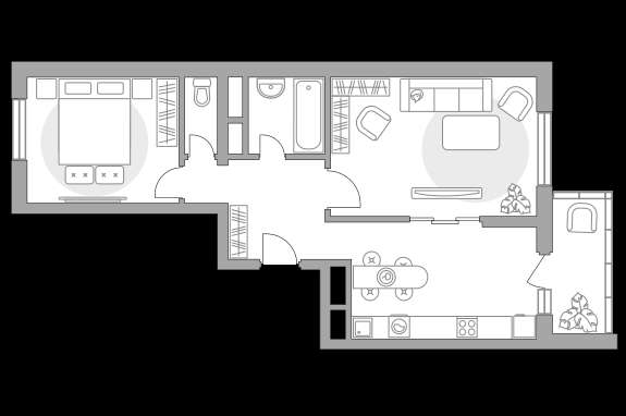 Жилая площадь 28.68 м2, кухня 12.93 м2. Площадь комнат: 17.26/11.42 м2, квартира без отделки, лоджий - 1.