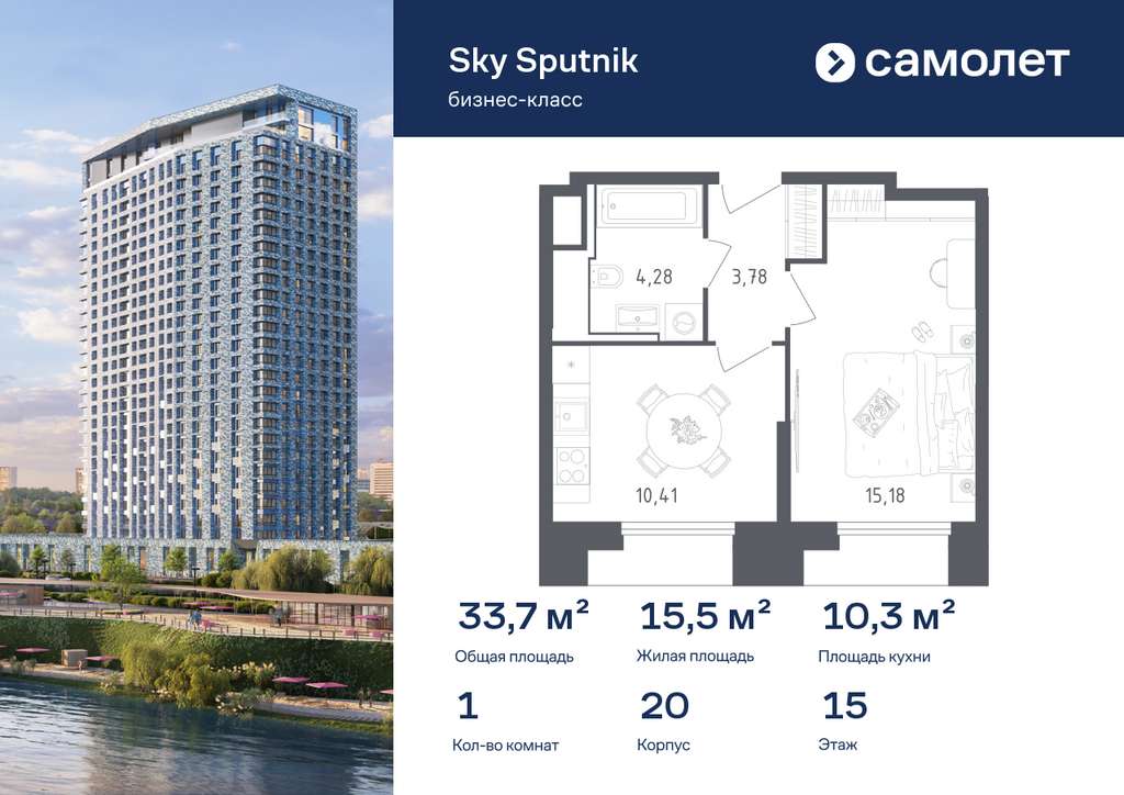 Строим кварталы для жизни с заботой о будущем. Предлагаются 1-комнатные апартаменты бизнес-класса 33,65 кв. м в корпусе 20 на 15 этаже, в Sky Sputnik