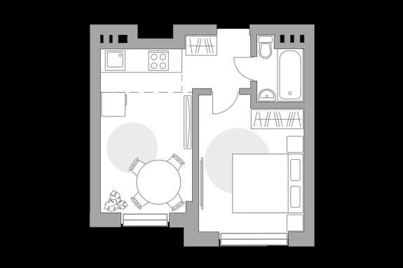 Жилая площадь 28 м2, кухня 4 м2. Площадь комнат: 15.60/12.40 м2, черновая отделка, окна выходят на улицу.
