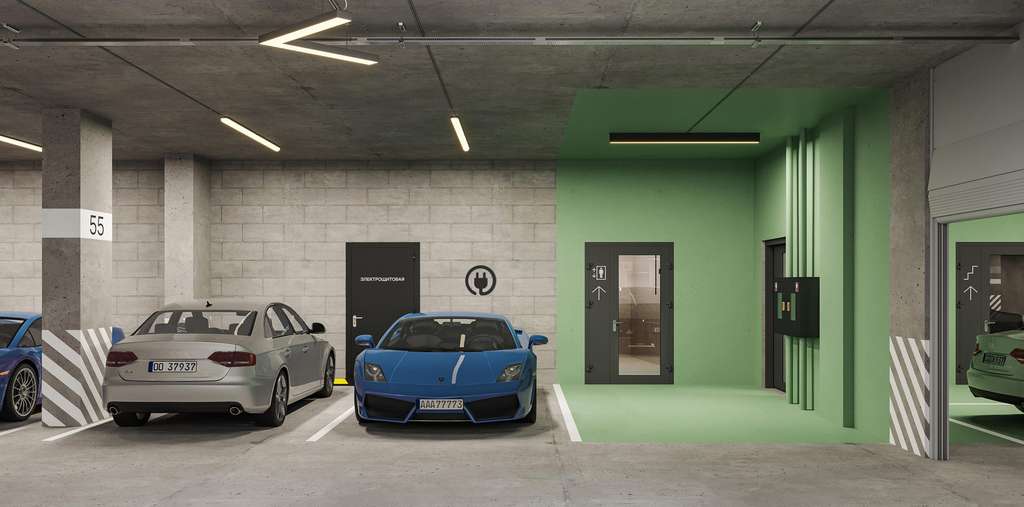 12. Паркинги: подземные с зарядками для электрокаров, отдельные многоэтажные и плоскостные