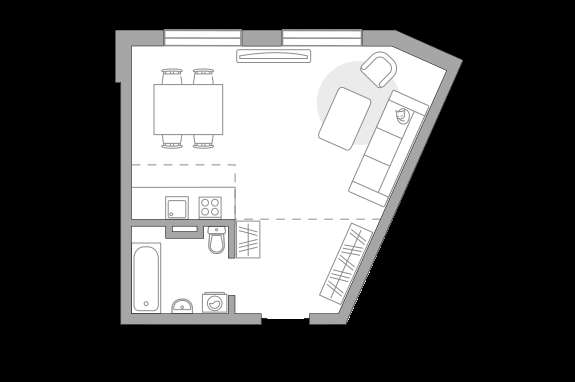 Жилая площадь 19.61 м2, кухня 2.71 м2, черновая отделка, комнаты смежные, окна выходят на улицу.