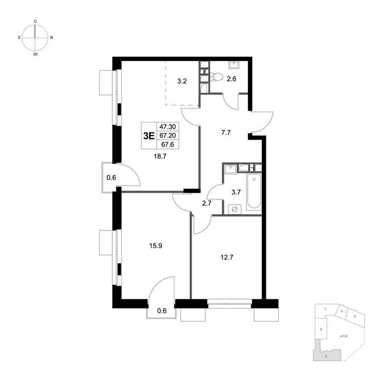 В ЖК «Легенда Марусино» продаётся 3 -к квартира 67.6 кв. м, расположенная на 2 -м этаже 7 -этажного дома.