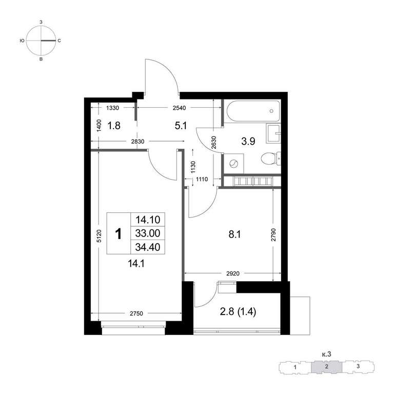 В ЖК «Легенда Коренево» продаётся 1 -к квартира 34.4 кв. м., расположенная на 5 -м этаже 8-этажного дома.