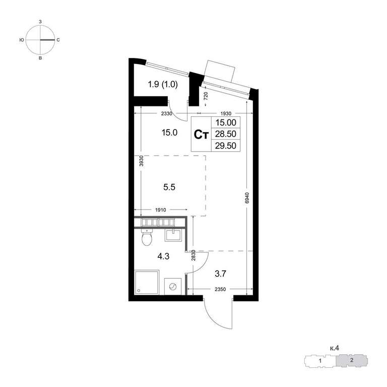 В ЖК «Легенда Коренево» продаётся студия -к квартира 29.5 кв. м., расположенная на 5 -м этаже 8-этажного дома.