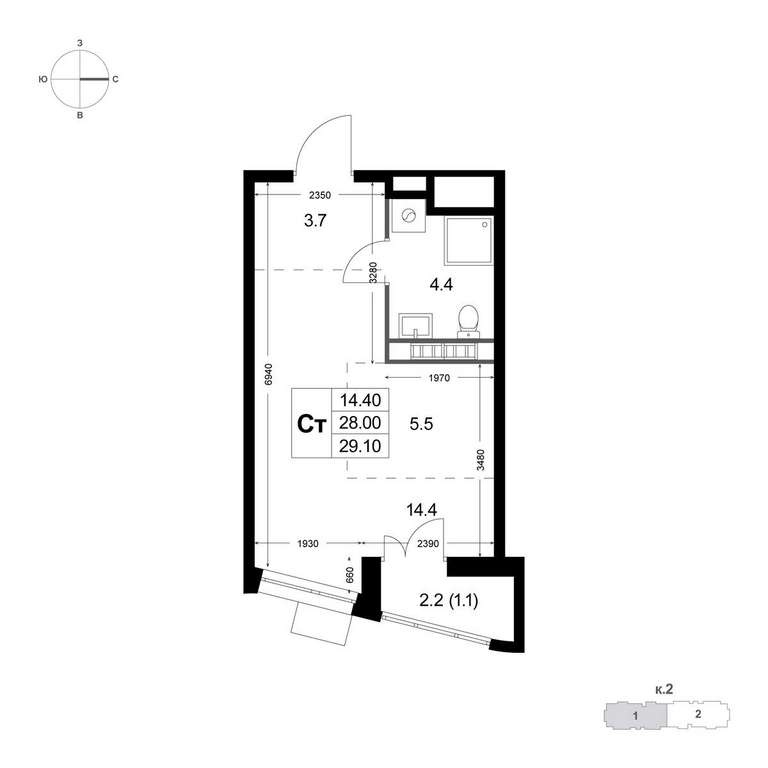 - 14.40 м2