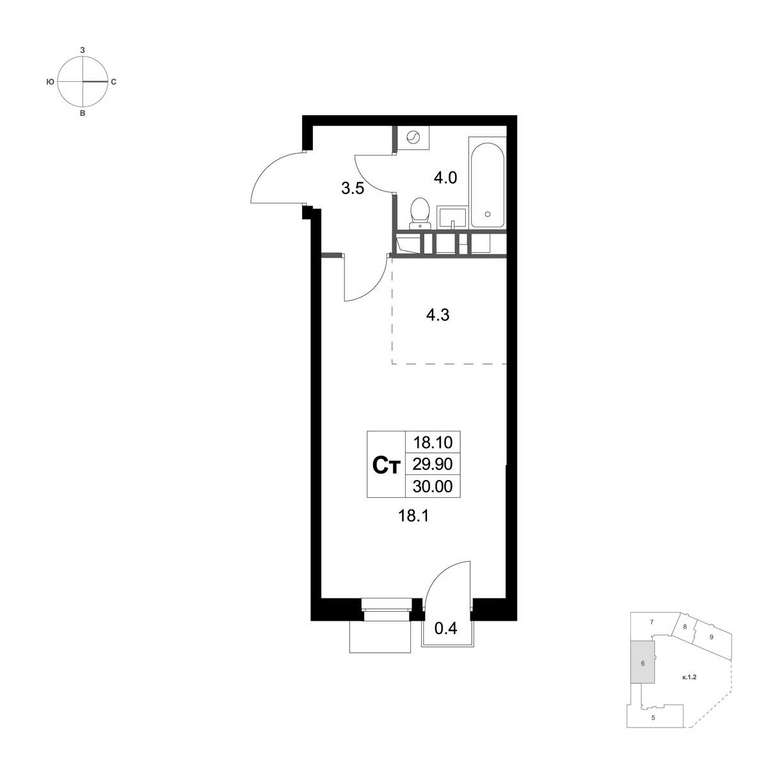 В ЖК «Легенда Марусино» продаётся студия -к квартира 30 кв. м, расположенная на 3 -м этаже 4 -этажного дома.