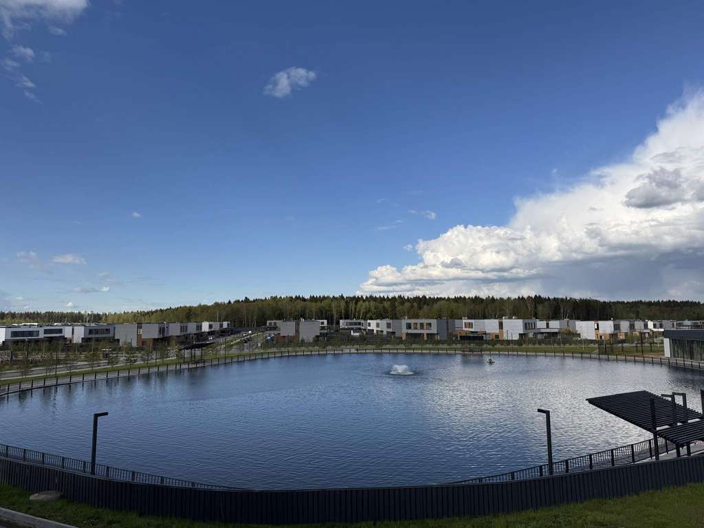 Расположение дома уникально: из него открывается вид на озеро, а внутренняя инфраструктура коттеджного посёлка находится поблизости. Вы сможете легко добраться до детских и спортивных площадок, теннисного корта, прогулочной аллеи и набережной. Также рядом расположены ресторан и супермаркет.