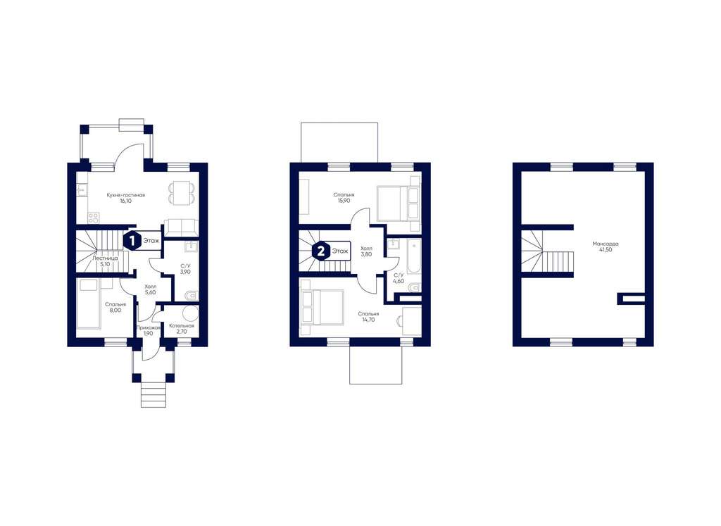 - Мансарда: 41.5 м