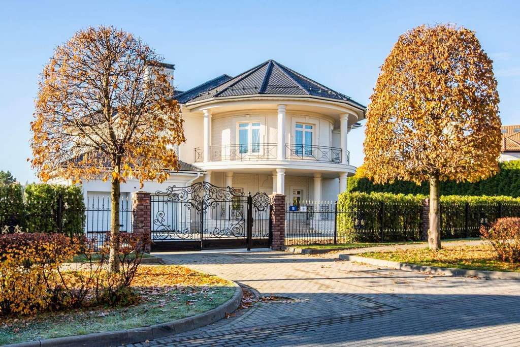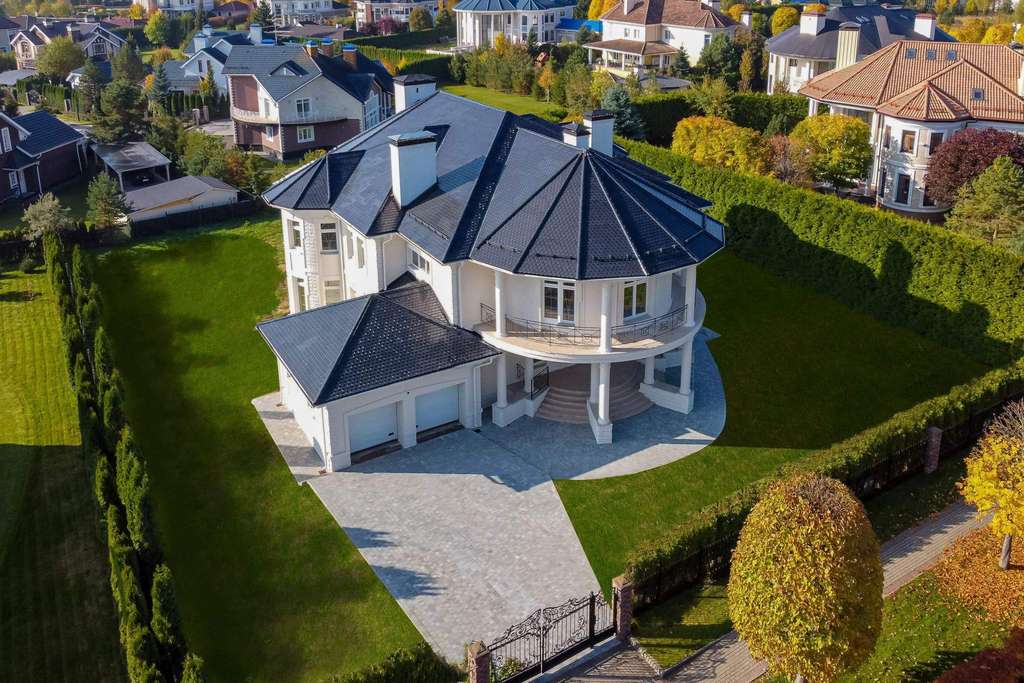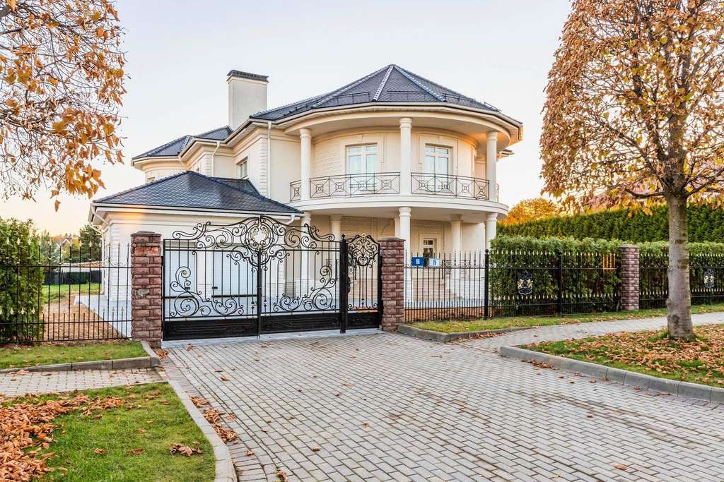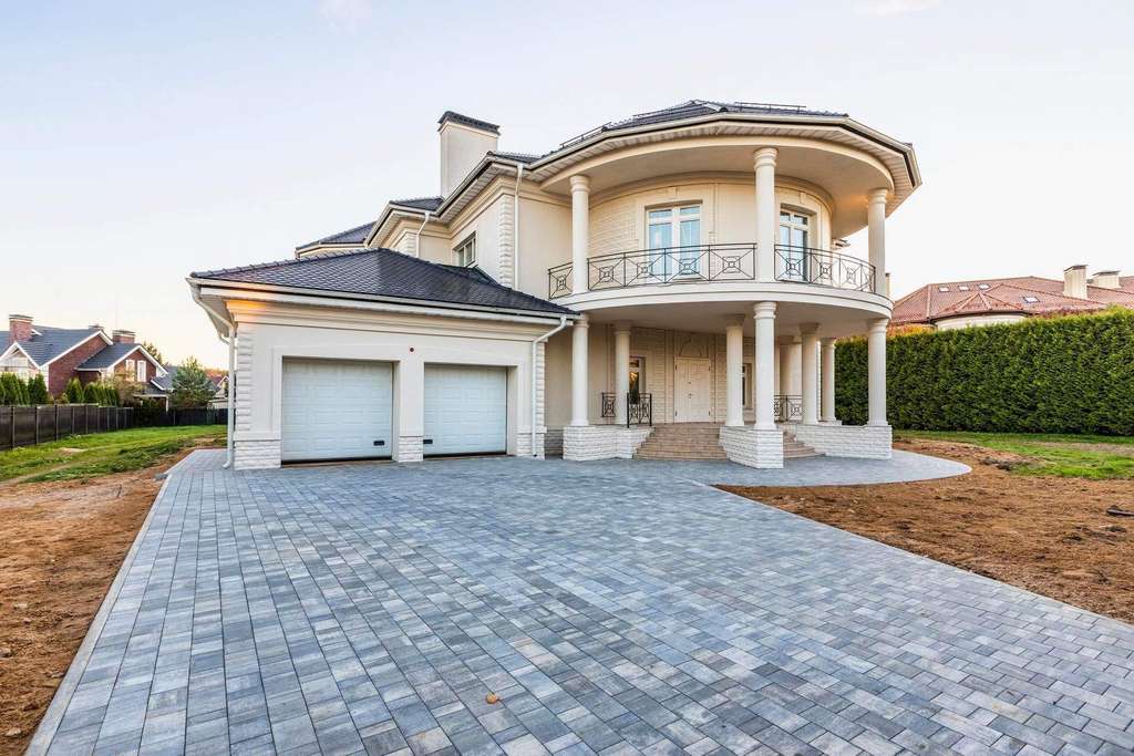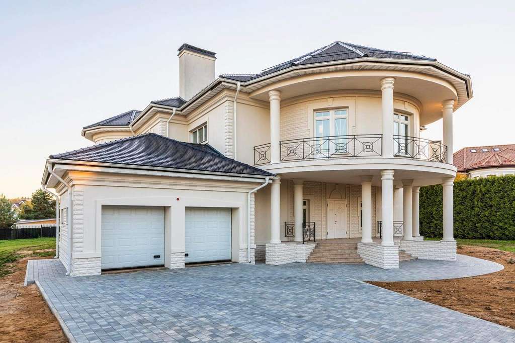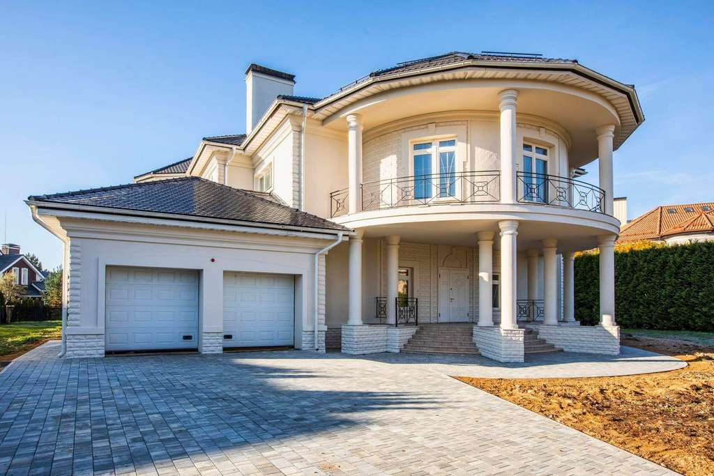 Внутри вам оставлена самая приятная часть: создать интерьеры по вашему вкусу, так как дом предлагается без отделки. На первом этаже расположен роскошный каминный зал со вторым светом и полукруглыми окнами. С двух сторон каминного зала расположены полукруглые гостиная и столовая - каждаяимеет свой выход на полукруглую террасу. Рядом со столовой спланирована кухня.