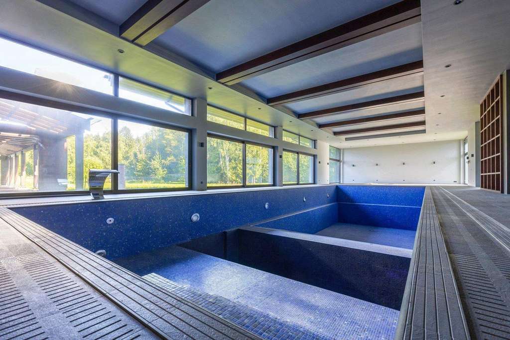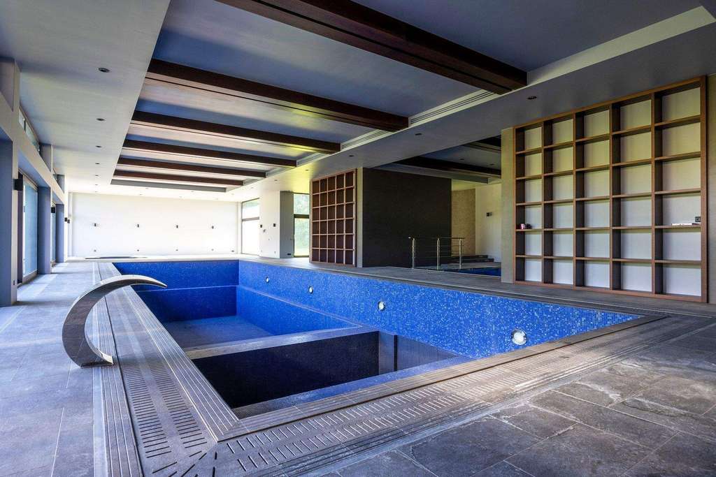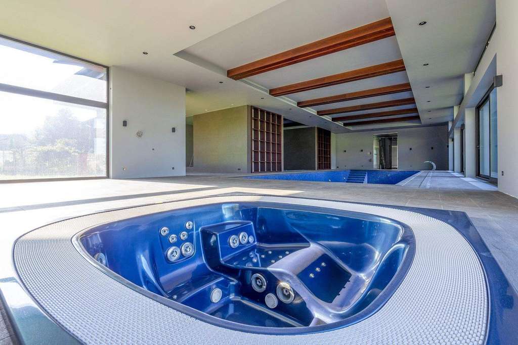 На цокольном этаже расположены: зона отдыха, помещение под домашний кинотеатр, игровая, кухня, гостевой санузел и техническое помещение. На первом этаже - гостиная, столовая, кухня - с выходами на большую террасу, малая гостиная, кабинет, гостевой санузел, прачечная, две комнаты для хознужд, гостевая зона с тремя спальнями и двумя санузлами, а также большая спа-зона: 15-метровый бассейн, бассейн с холодной водой, джакузи, пароваякабина, сауна, солевая комната, тренажерный зал, два санузла. На втором этаже находятся пять спален, каждая из которых с индивидуальным санузлом и гардеробной комнатой, и три детские. В доме смонтирована система вентиляции и кондиционирования с функцией увлажнения воздуха, системы отопления, водопровода и канализации, а также электрика. Установлена сантехника ведущих производителей (Handsgrohe& Villeroy&Bosh, Dornbracht, Cielo) . Проложена сеть для внешнего и внутреннего наблюдения, а также усиление сигнала wi- и сотовой связи.