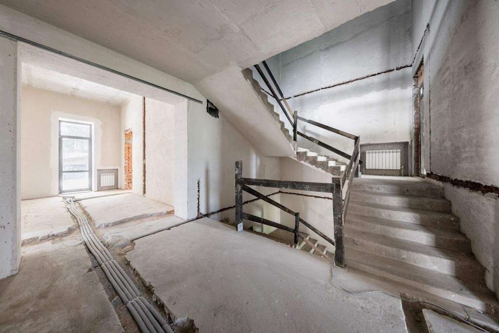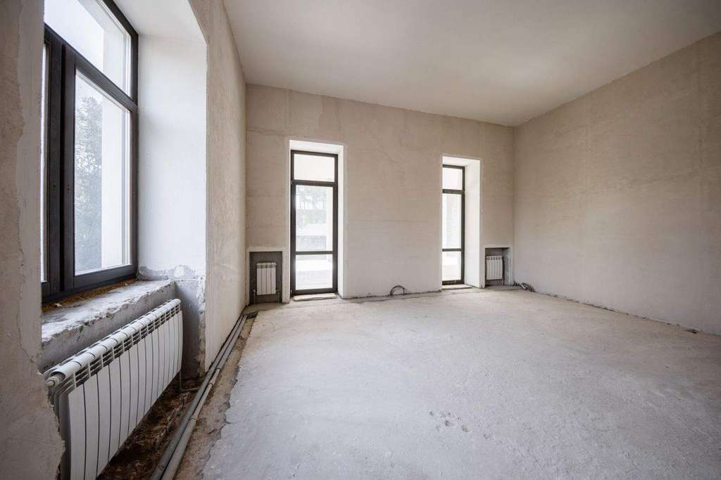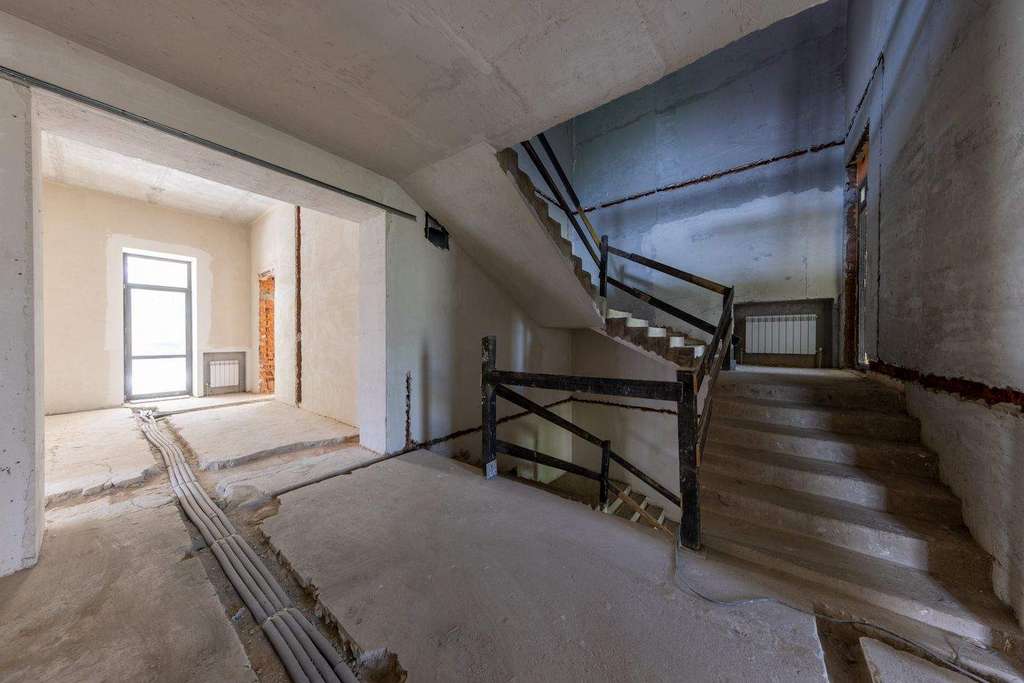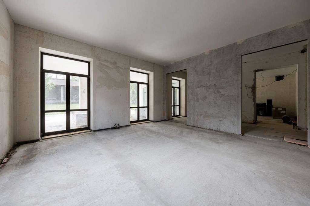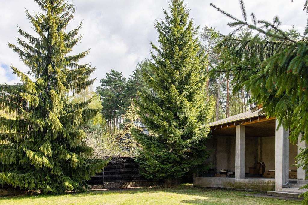 Просторный загородный дом площадью 1300 м построен на ровном полевом участке 15 соток без ландшафтного дизайна. Фасад в европейском стиле облицован коричневой клинкерной плиткой и натуральным камнем по цоколю, декорирован белыми наличниками и колоннами. В коттедже без отделки спланировали несколько спален, гостиную, кухню, кабинет, кинотеатр, спортзал, парилку и гараж. Укрыться от солнца и отдохнуть на свежем воздухе можно в тени террасы с видом на участок или в беседке.