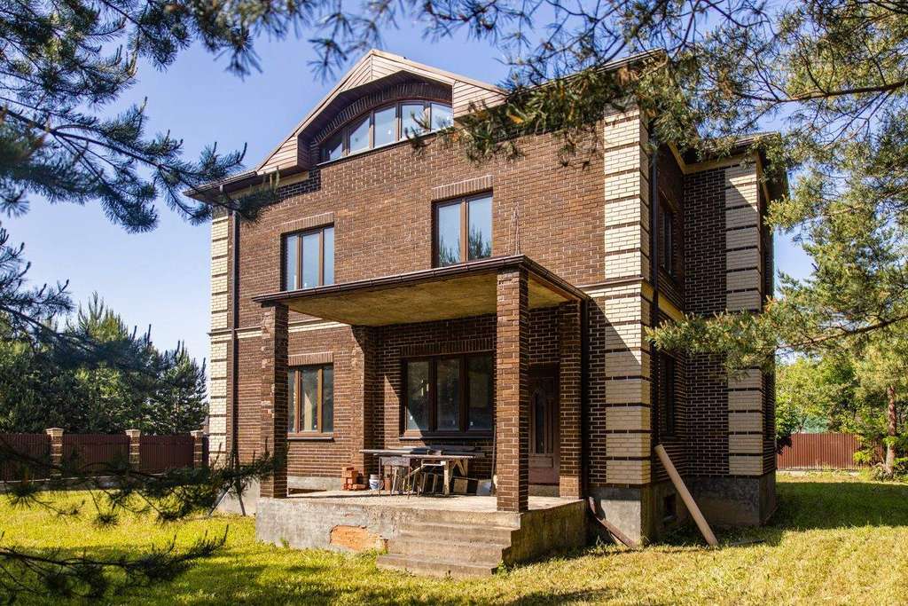 Загородный дом площадью 500 м расположен на полевом участке 16,5 соток. Фасад здания облицован коричневым клинкерным кирпичом. В коттедже с отделкой whitebox осталось лишь выбрать финишные покрытия и выполнить меблировку.