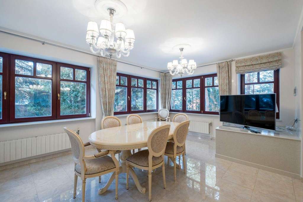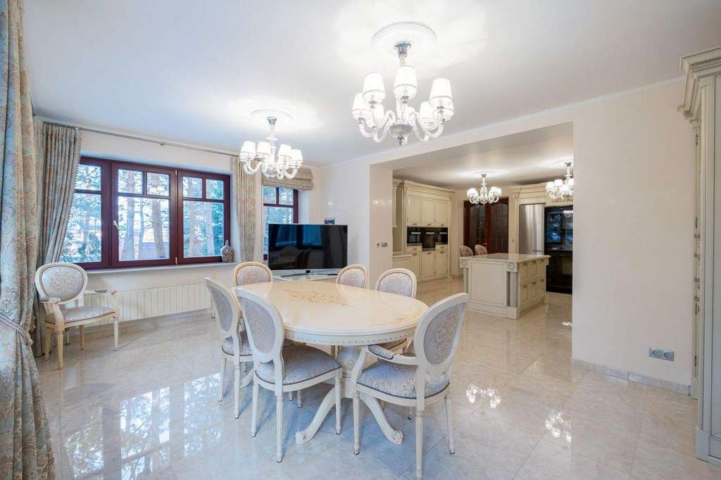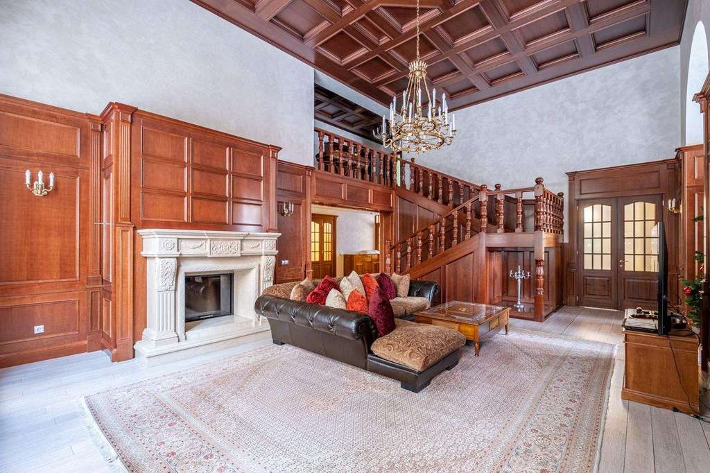 Борки-4. Вашему вниманию предлагается новоепредложение в камерном, охраняемом коттеджном поселке. Удобная транспортная развязка. Дом в стиле современной классики на лесном участке. Так же есть отдельный дом для персонала, дом охраны и зона барбекю. Внутреннее убранство основного дома напоминает английскую классику. В отделке фасада и интерьеров использованы дорогие породы дерева, натуральный камень, тканевые обои