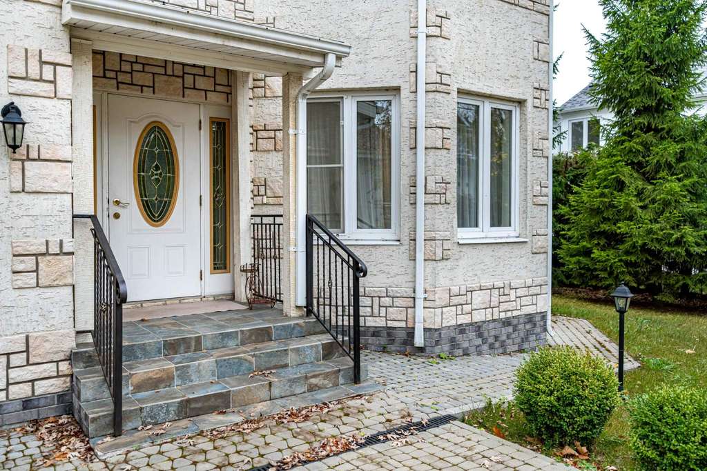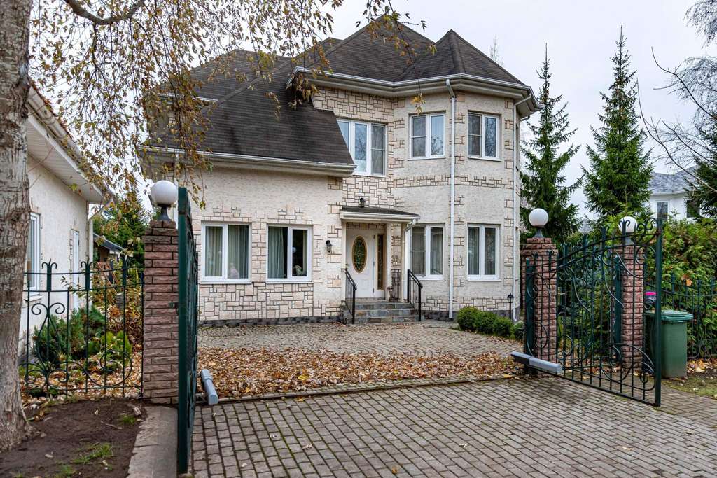 Стильный кирпичный коттедж. На участке - отдельностоящий двухуровневый гараж с жилыми комнатами для персонала.