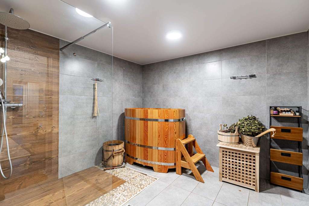 В основном доме: 4 спальни, 3 санузла, кухня - столовая, гостиная, кабинет/игровая, постирочная. Очаровательный банный комплекс Спа / гостевой дом оборудован своей купелью, сауной, кухней, меблированной террасой и тд!