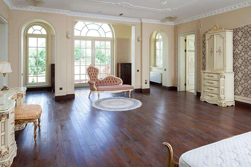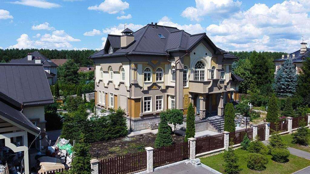 Основной дом имеет площадь 1200 кв. м. В доме выполнен дизайнерский ремонт в классическом стиле. Идеальный вариант для большой семьи, обустроено 7 спален с приватными с/у, ванными и гардеробными комнатами. Для отдыха есть СПА-зона с бассейном, сауной, хаммамом, спортивным залом и комнатой отдыха. Для комфортного передвижения между этажами установлен лифт. Отдельно построены гостевой дом 500 кв. м. и гараж на 4-5 машиномест.