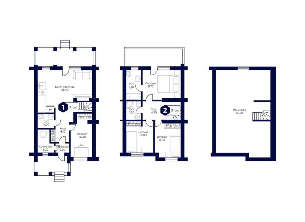 - Мансарда: 66.4 м