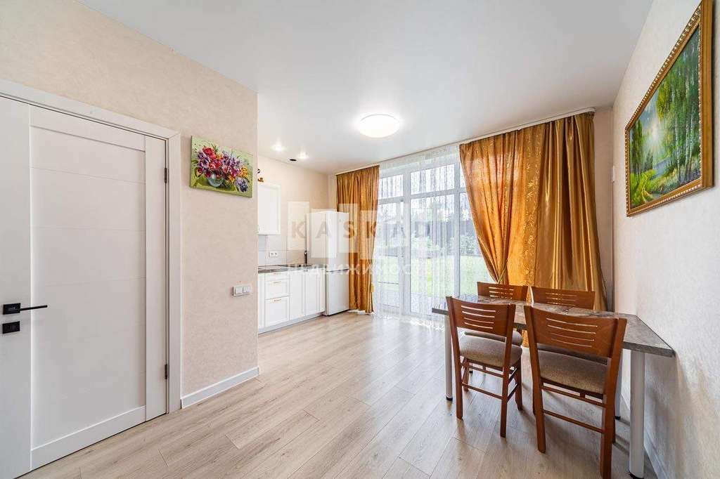 Планировка дома простая и удобная: В первой , основной, половине дома: кухня -гостиная с панорамным окном и выходом на террасу, 2 комнаты, бойлерная-постирочная, санузел с ванной. Во второй половине (вход отдельный) : кухня-гостиная с панорамным окном, выход во двор, комната, санузел с ванной.