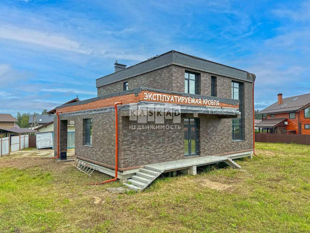Дом в современном стиле с эксплуатируемой кровлей с большими панорамными окнами в жилом, охраняемом КП "Спас Каменка" на берегу озера с кристально чистой водой и развитой инфраструктурой.