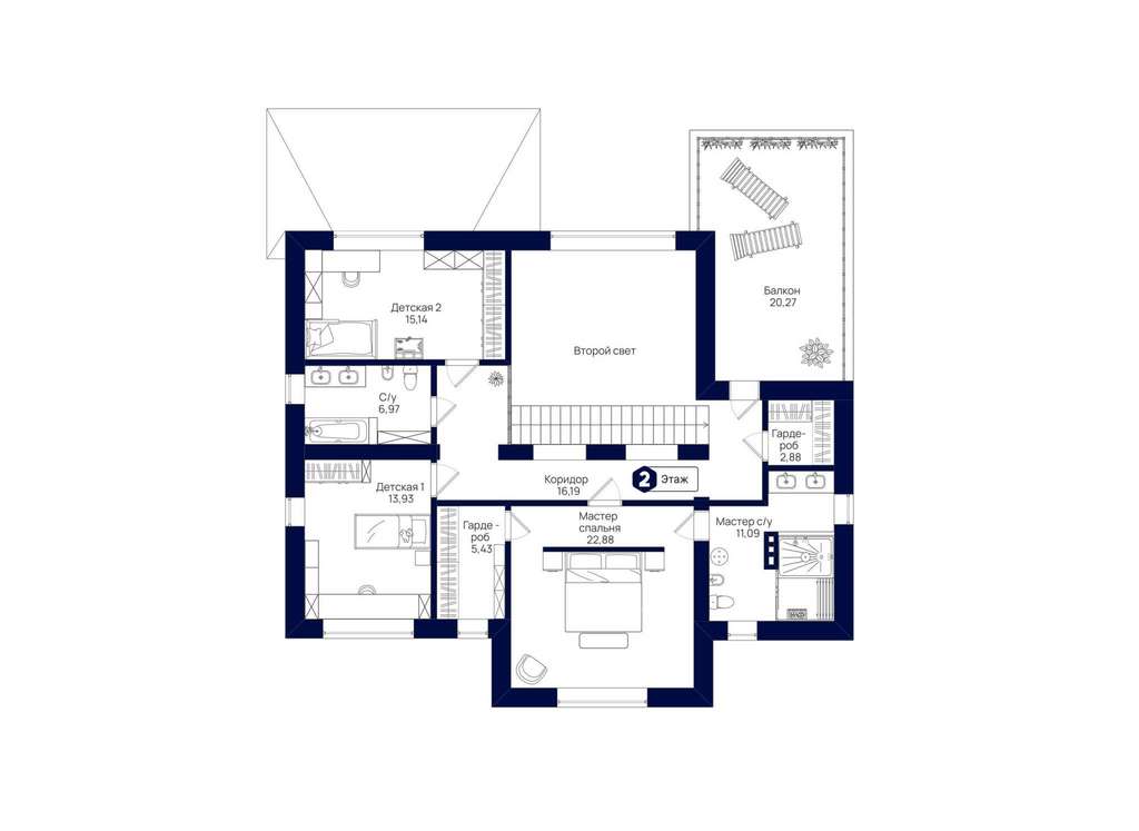 На втором этаже расположена уютная мастер-спальня с собственными ванной и гардеробной. Две дополнительные спальные комнаты с отдельными туалетом, ванной и общей гардеробной станут идеальным местом отдыха для детей или гостей.
