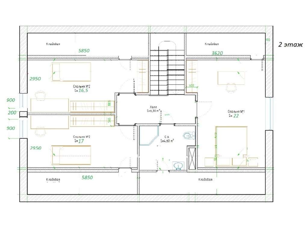 2 этаж: Три спальни (17/16,5/22), с/у с душевой, много мест для хранения.
