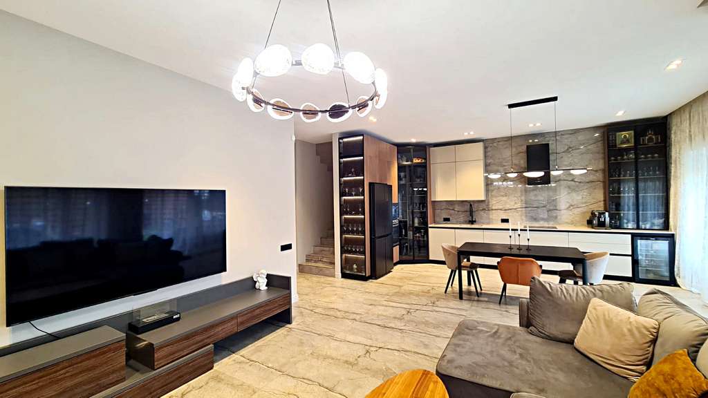 Предлагается к продаже уютный дуплекс 186 квадратных метров с мангальной зоной и зоной отдыха на заднем дворе площадью 3 сотки.