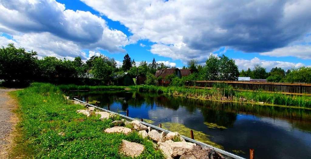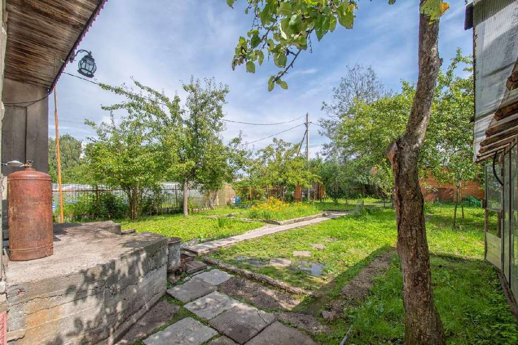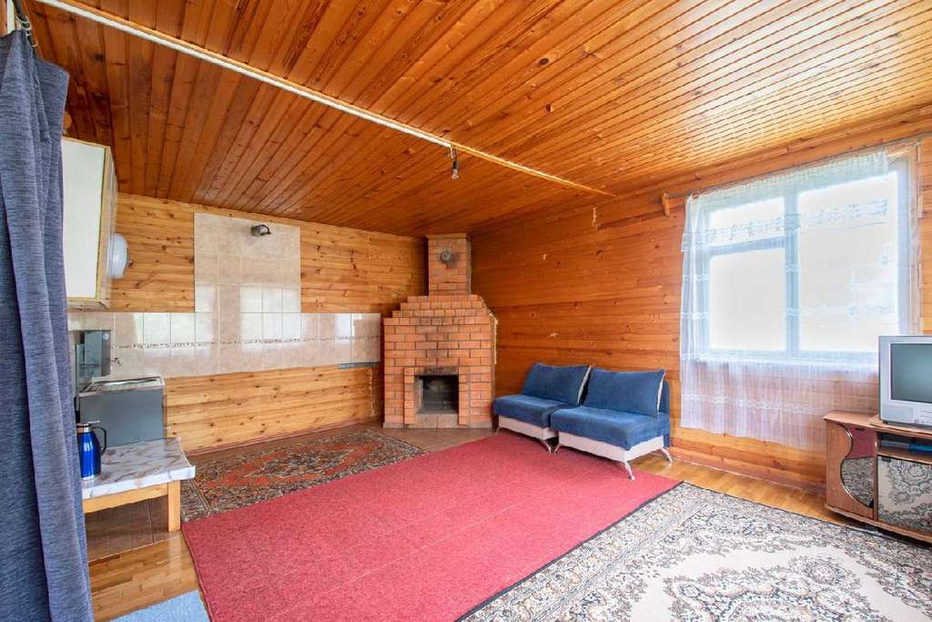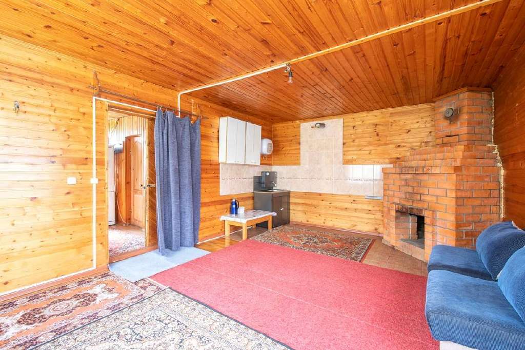 В дом проведено электричество, заведены трубы для воды - осталось только подключить их с улицы, газ- баллонный, но магистральный идет по границе участка, есть возможность подключить, отопление - камин и электрообогреватель , канализация - выгребная яма . На участке растут плодовые деревья. Есть баня , парник , хоз. постройки .