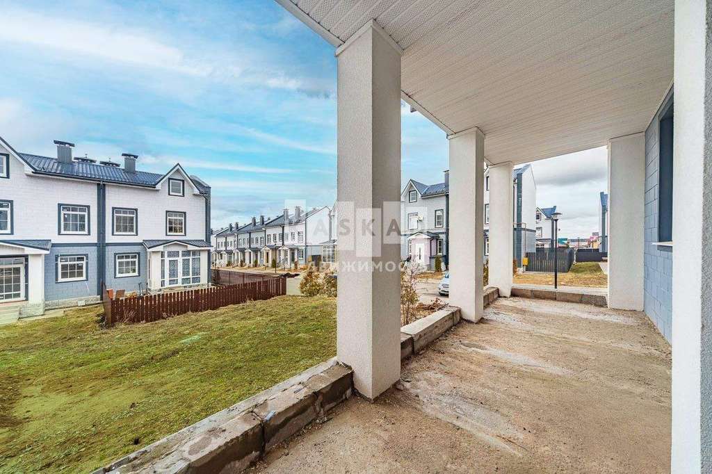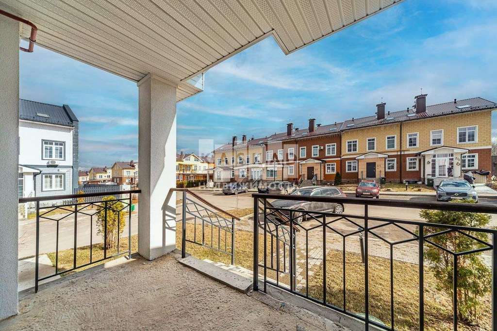 У таунхауса есть приусадебный участок, где можно построить детскую площадку, организовать зону барбекю или установить бассейн. Территория участка 2,5 сотки, имеет правильную форму, участок выровнен с газонным покрытием. Выход на террасу в сторону заднего двора, а над террасой располагается балкон с выходом на втором этаже.