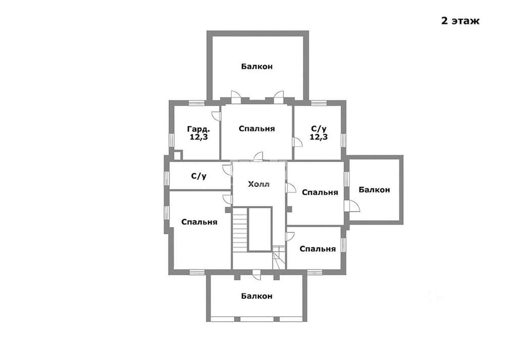 2 этаж: 2 спальни с индивидуальными санузлами и гардеробными, 2 детские спальни с общим санузлом.