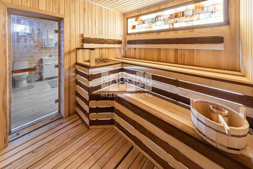 Баня из клееного бруса с полной отделкой имеет общую площадь 110 м. (2 этажа) .