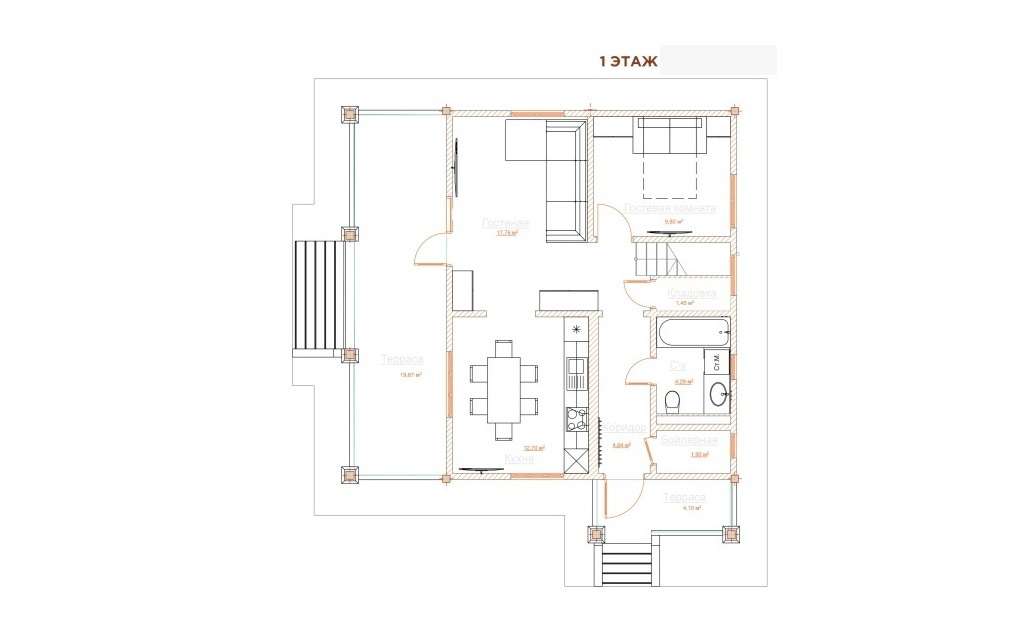 Внешняя и внутренняя отделка дома Фасад дома утеплен и отделан имитацией бруса. Внутренняя отделка не включена в стоимость.