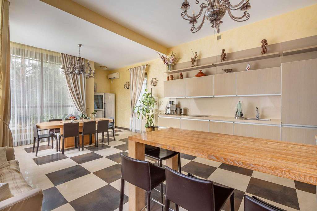Внутреннее убранство выполнено в сдержанном стиле, без лишних деталей. Мебель, сантехническое оборудование и бытовые приборы - от известных европейских брендов премиум-класса. Дом возведен в 2008 году, а в 2019 была проведена масштабная реновация. Сердцем дома является просторная гостиная, наполненная естественным светом и воздухом, с великолепными панорамными окнами и разнообразными зонами отдыха для каждого члена семьи.