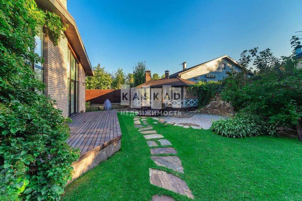 На участке выполнен ландшафтный дизайн. Есть беседка с русской печью, мангальной зоной и тандыром, пруд с деревянным мостиком и водопадом. А также крытая парковка на 2-3 автомобиля.