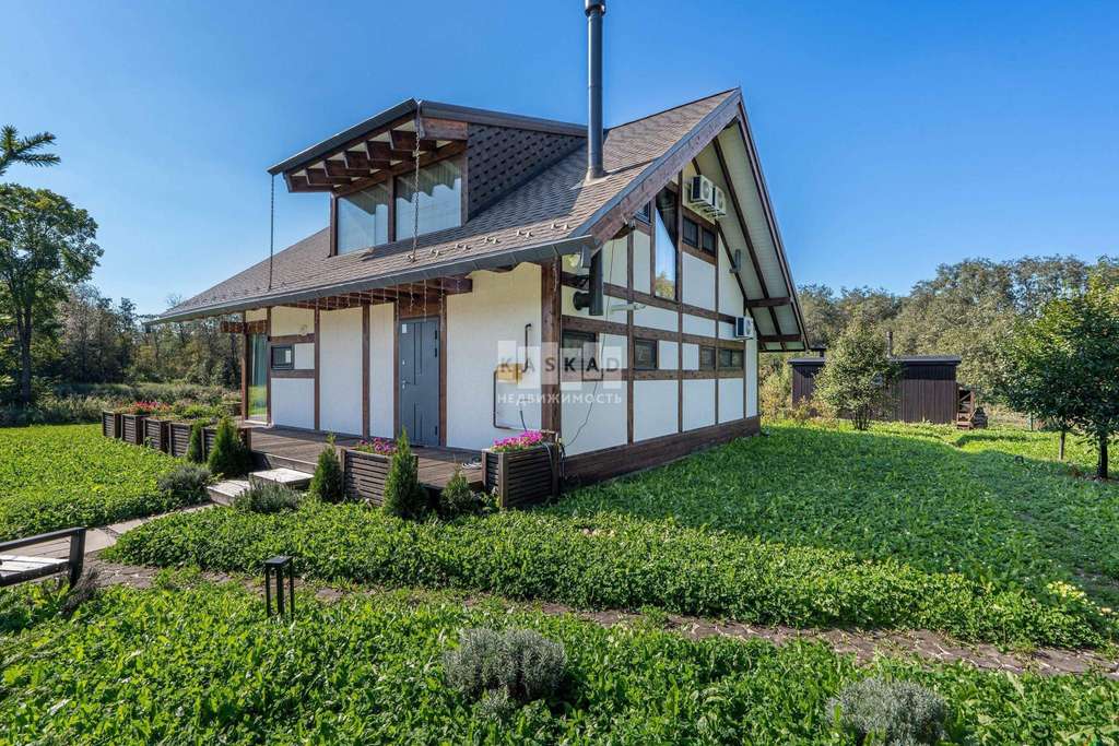 Земельный участок помимо основного дома включает зону барбекю с выходом на пруд и традиционную баню с дровяной печью. Вечером на территории участка и дома включается мягкая и стильная подсветка, создающая неповторимую атмосферу уюта и комфорта. Этот дом идеально подойдет для тех, кто ценит современный стиль, высокий уровень комфорта и живописную близость к природе.