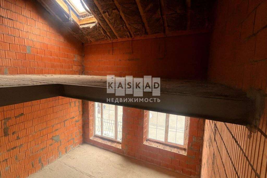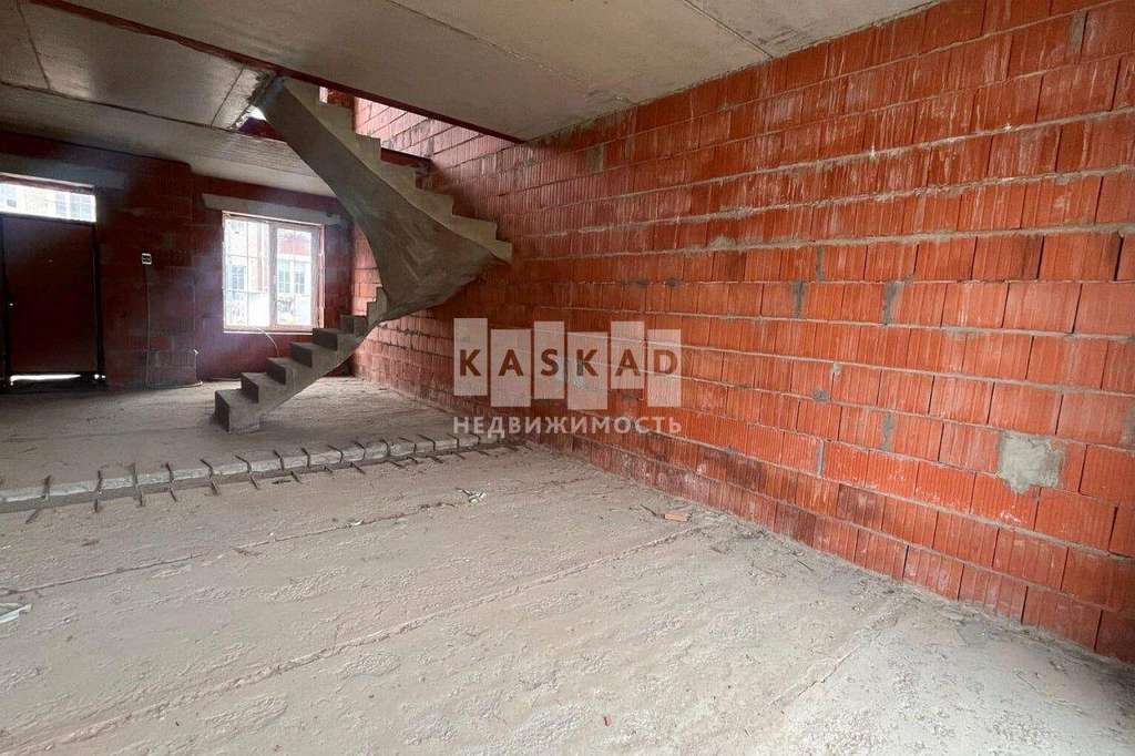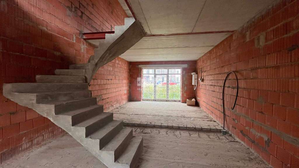 Таунхаус построен из кирпича, без отделки, лестница монолит, панорамное остекление.