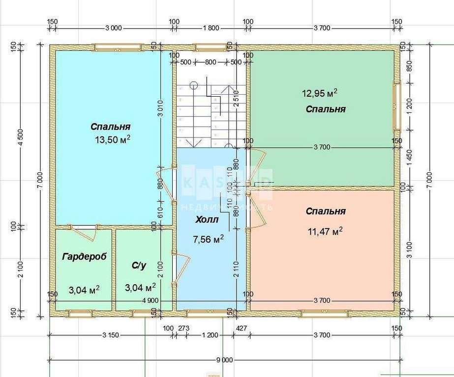 Вторая этаж: мастер - спальня площадью 17 м, две детские комнаты по 13 и 12 м, а также санузел, обеспечивающий комфорт для всей семьи.