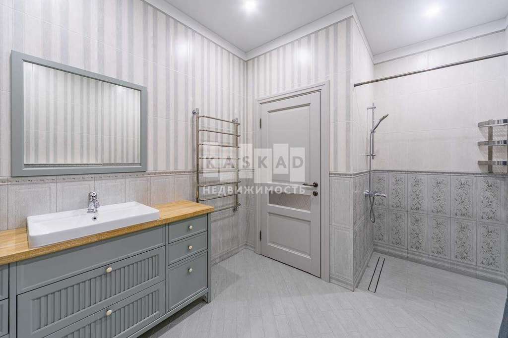 В отделке использованы только высококачественные материалы: натуральное дерево, керамогранит, теплый пол. Сантехника премиум класса. Вся необходимая бытовая техника: встроенный холодильник, посудомоечная машина, варочная панель, духовка, стиральная машина.