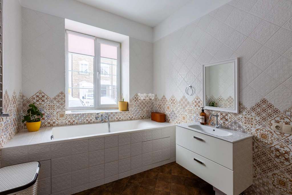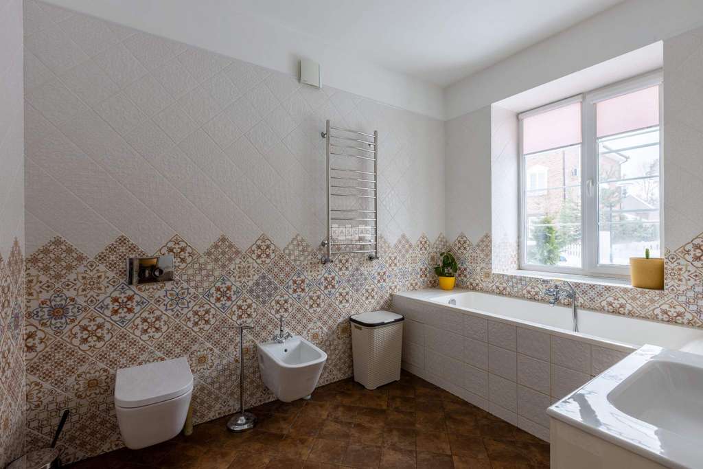 Ремонт выполнен исключительно для себя, поэтому использованы только качественные материалы: испанская и итальянская плитка; техника Bosh; лестница из массива дуба с испанскими изразцами.