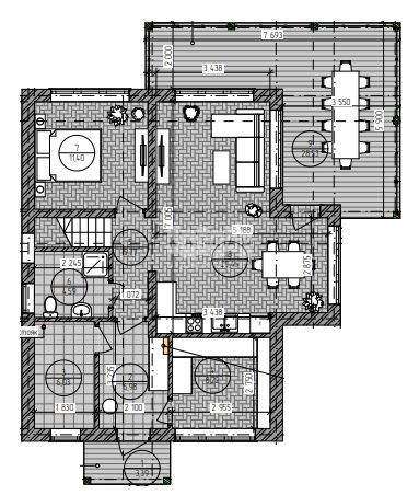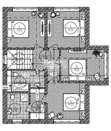 2 этаж: холл, мастер-спальня с санузлом и гардеробом, две спальни, санузел, кабинет;