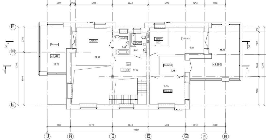 2 этаж: мастер спальня с санузлом и террасой; холл, санузел, 2 спальни с гардеробом и террасой.