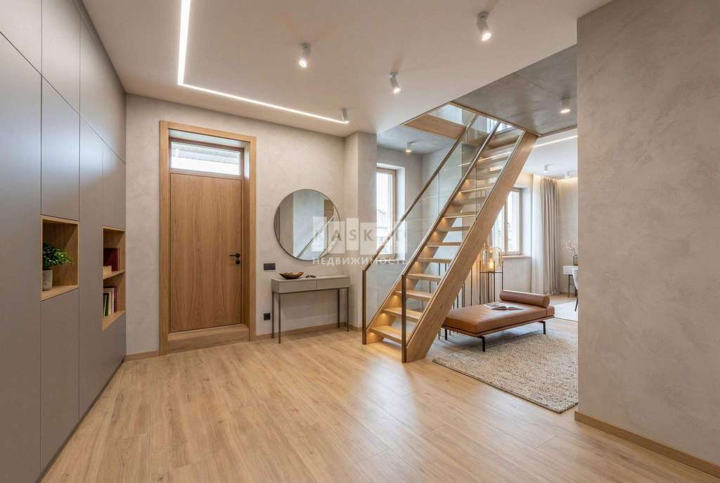 Коттедж площадью 236 квадратных метров, выдержан в традициях английской архитектуры, расположен на земельном участке в 9,3 сотки, в 15 километрах от Москвы по Дмитровскому шоссе.